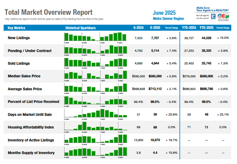 “Inventory has grown like summer trail traffic—up 32% compared to June of last year as more property owners step onto the path to selling. Sales, however, are only slightly ahead of last year, rising just 0.7%. The market isn’t racing toward the summit, but it’s moving forward with deliberate steps.