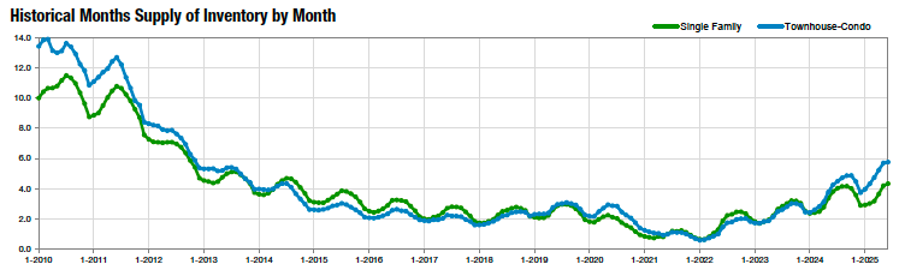 “Despite these dynamics, pricing has remained relatively stable. The average and median sales prices for single-family homes are holding within 1–2% of last year’s figures. After the sharp appreciation from 2020 through early 2023, both median price and price-per-square-foot have remained largely flat over the past 24–30 months. However, with the current trend of price reductions, we anticipate a gradual downward shift in pricing during the second half of the year.