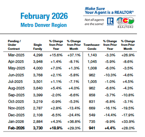 “Single-family homes continue to carry most of the momentum, with pending contracts rising 18.9% year over year and inventory tightening to 2.5 months of supply, while the attached segment remains more constrained by affordability pressure, with closed sales down 12.2%, median prices down 5.0%, and average time on market stretching to 71 days. Looking ahead, the market also faces a higher level of uncertainty than it did just a few weeks ago. With global tensions rising, oil prices jumping, and interest rates remaining sticky above 6%, buyers and sellers alike are likely to stay cautious. If that uncertainty persists, expect the Denver metro market to continue rewarding patience, realistic pricing, and negotiated value over urgency or speculation,” said Denver County-area REALTOR® Cooper Thayer.