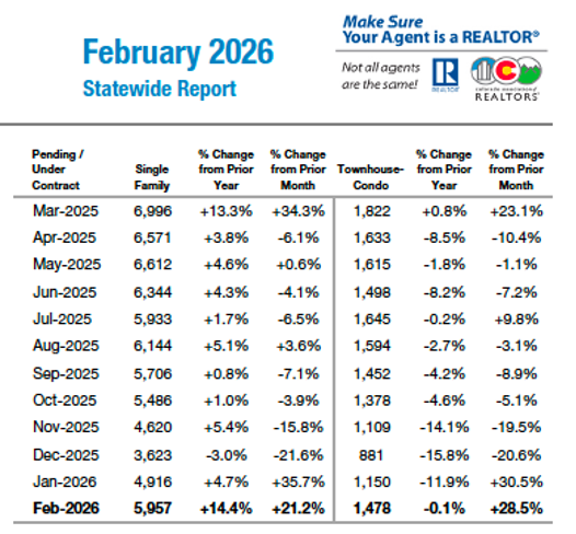 ENGLEWOOD, CO – Stronger homebuyer interest and engagement surfaced in February though conditions remain cautious and negotiation-driven across the Denver metro area and statewide housing markets, according to the February Market Trends Housing Report from the Colorado Association of REALTORS® (CAR).